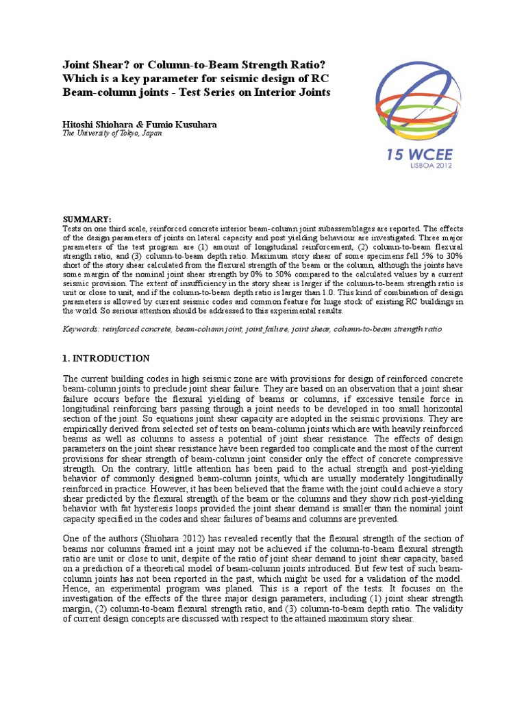 Keywords: reinforced concrete, beam-column joint, joint failure, joint shear, column-to-beam strength ratio