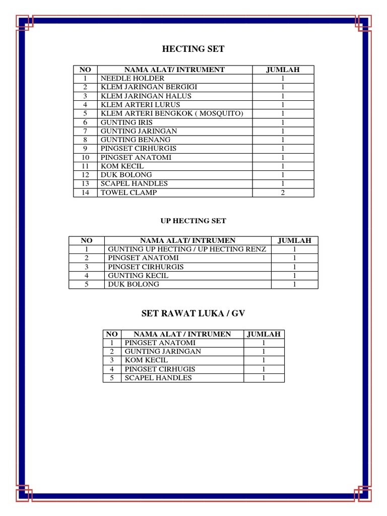 NO NAMA ALAT/ INTRUMENT JUMLAH