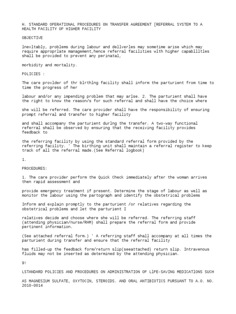 referral shall be observed by ensuring that the receiving facility provides