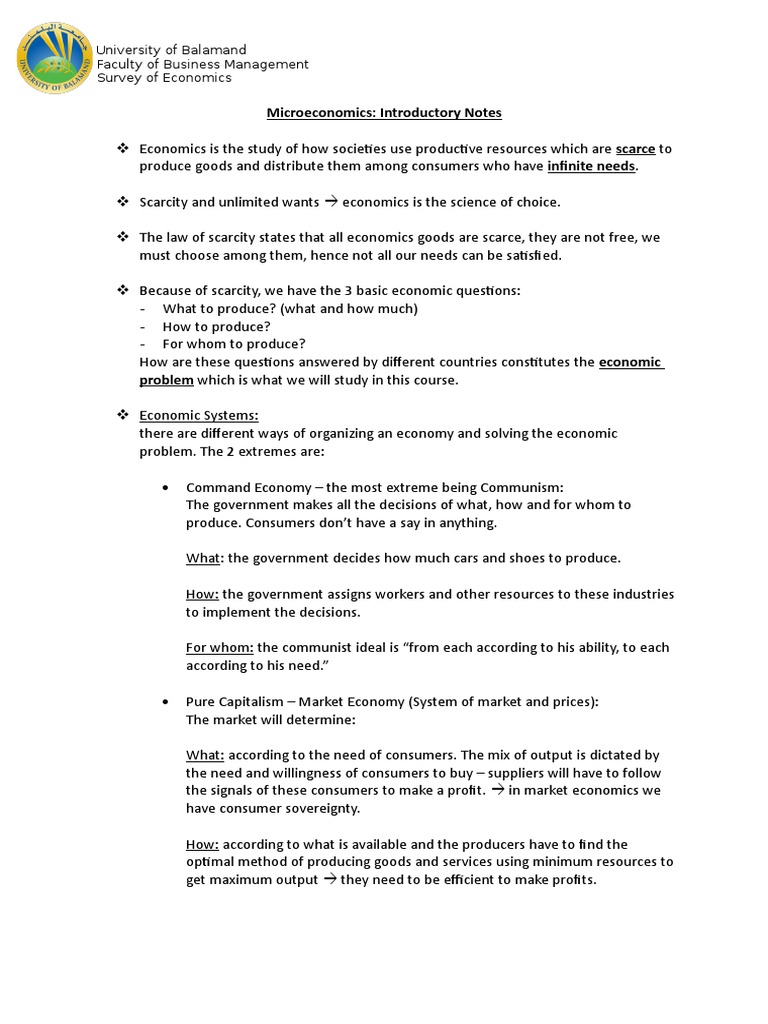 Microeconomics: Introductory Notes