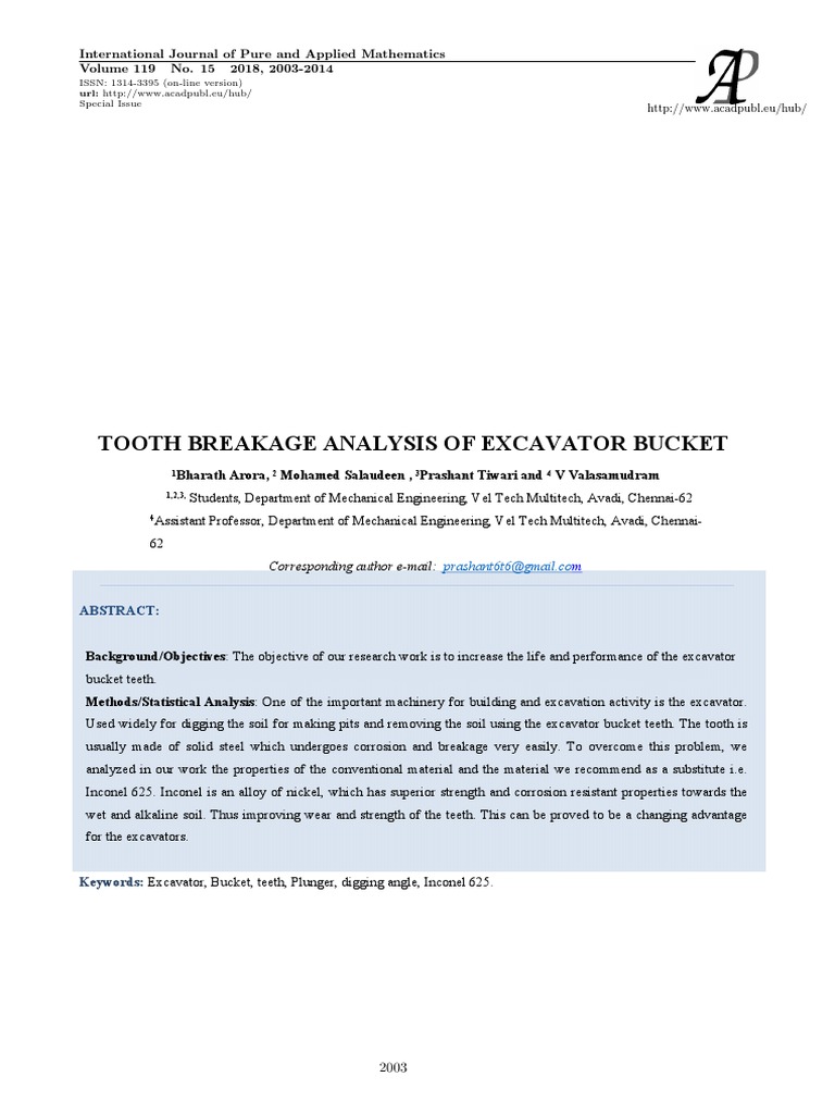 Keywords: Excavator, Bucket, teeth, Plunger, digging angle, Inconel 625.