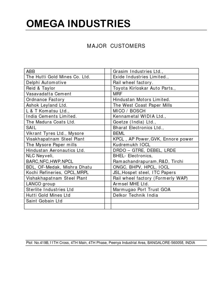 Plot No.419B,11TH Cross, 4TH Main, 4TH Phase, Peenya Industrial Area, BANGALORE-560058, INDIA