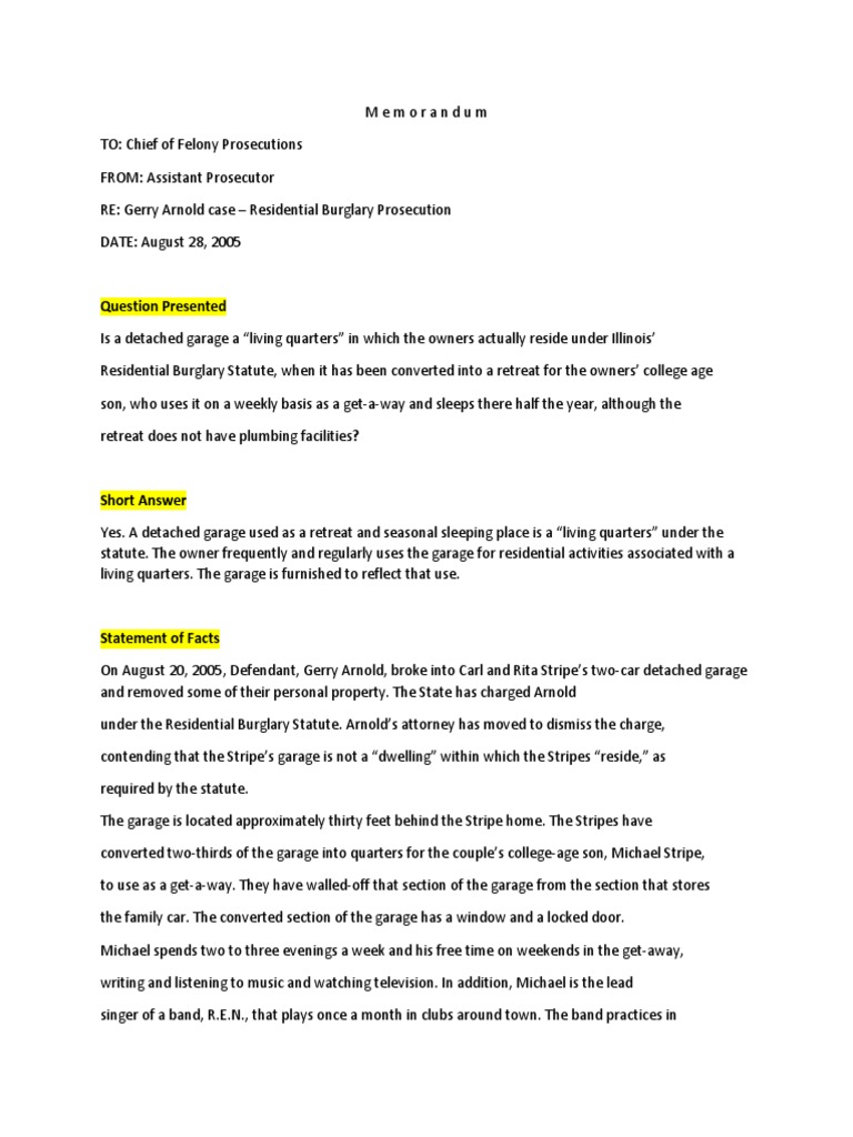 under the Residential Burglary Statute. Arnold’s attorney has moved to dismiss the charge,