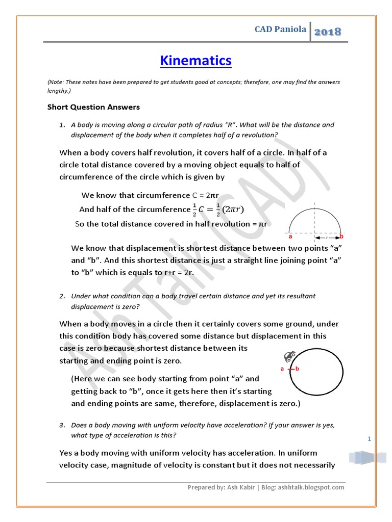 1. A body is moving along a circular path of radius “R”. What will be the distance and
