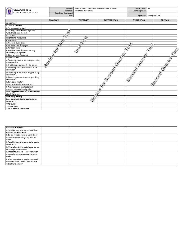 Daily Lesson Log for Grades 1-12