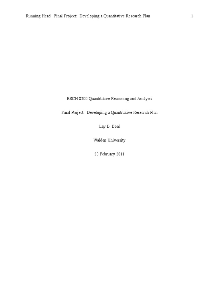 Running Head: Final Project: Developing a Quantitative Research Plan 1