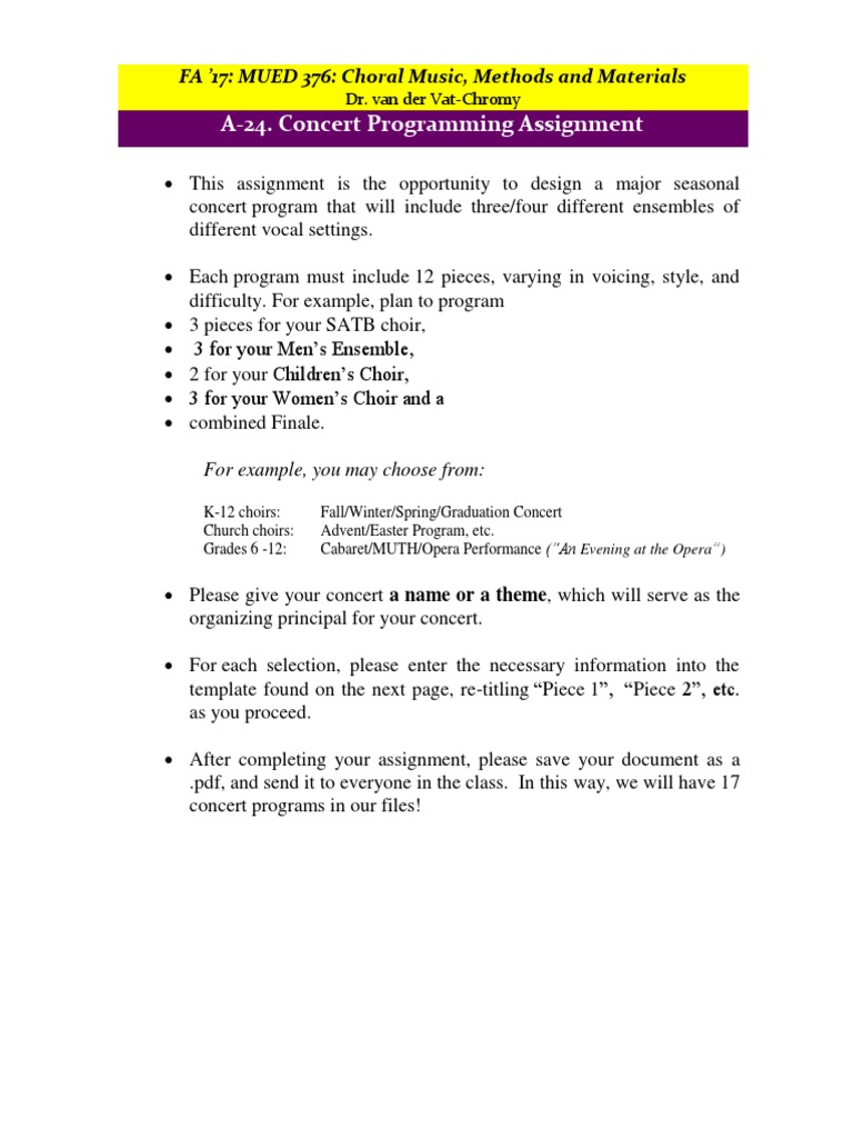 FA ’17: MUED 376: Choral Music, Methods and Materials