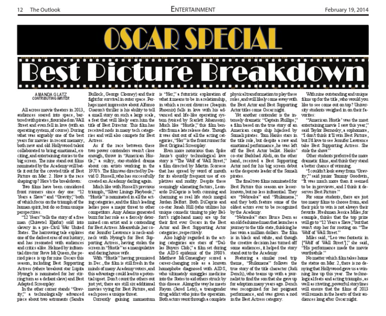 shaping up? Here’s the breakdown: created an Academy darling again. pletives and nudity. Despite these The final two films nominated for “It was much more than it seemed
