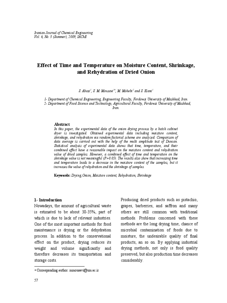 Effect of Time and Temperature On Moisture Content, Shrinkage, and Rehydration of Dried Onion