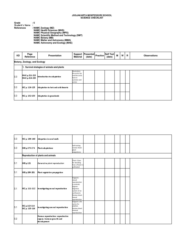 SCIENCE CHECKLIST