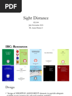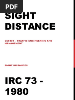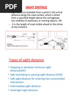 This document discusses various types of sight distances important for road safety including at horizontal curves, vertical curves, intersections, and overtaking zones. It also mentions PIEV theory which likely relates to factors that influence sight distance planning and design for roads.