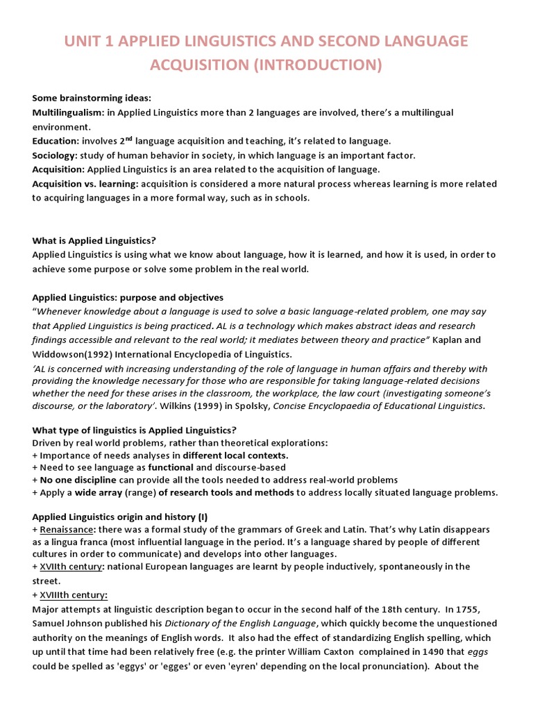 UNIT 1 APPLIED LINGUISTICS AND SECOND LANGUAGE
