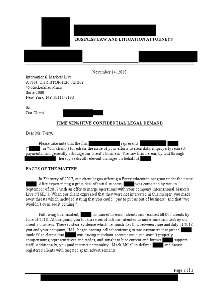 Live (“IML”). When our client expressed that they were not interested in this merger, you made