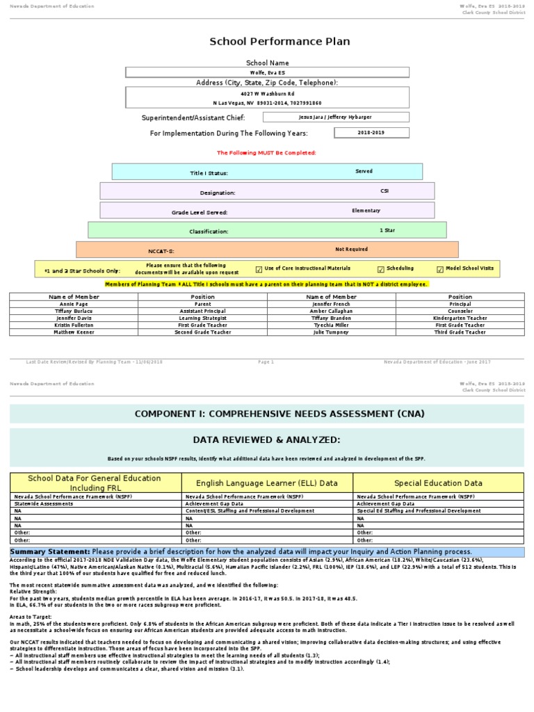 Last Date Review/Revised By Planning Team - 11/06/2018 Page 6 Nevada Department of Education - June 2017