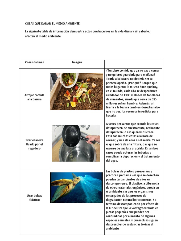COSAS QUE DAÑAN EL MEDIO AMBIENTE