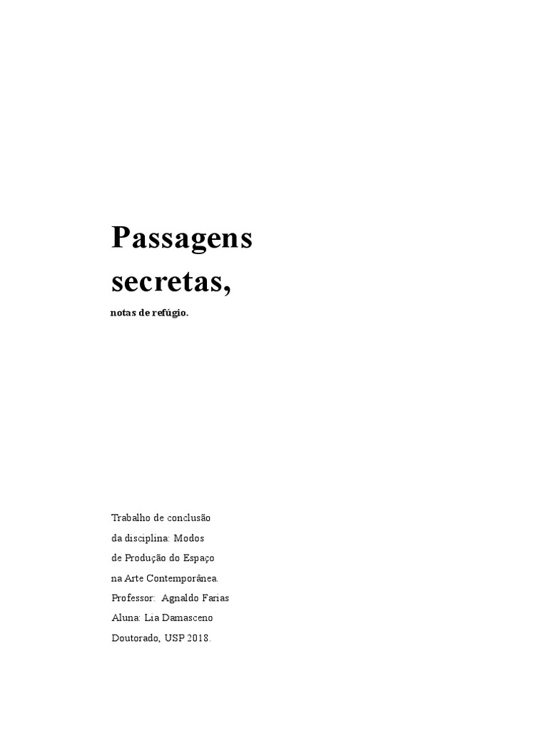 Passagens Secretas, Notas de Refúgio.