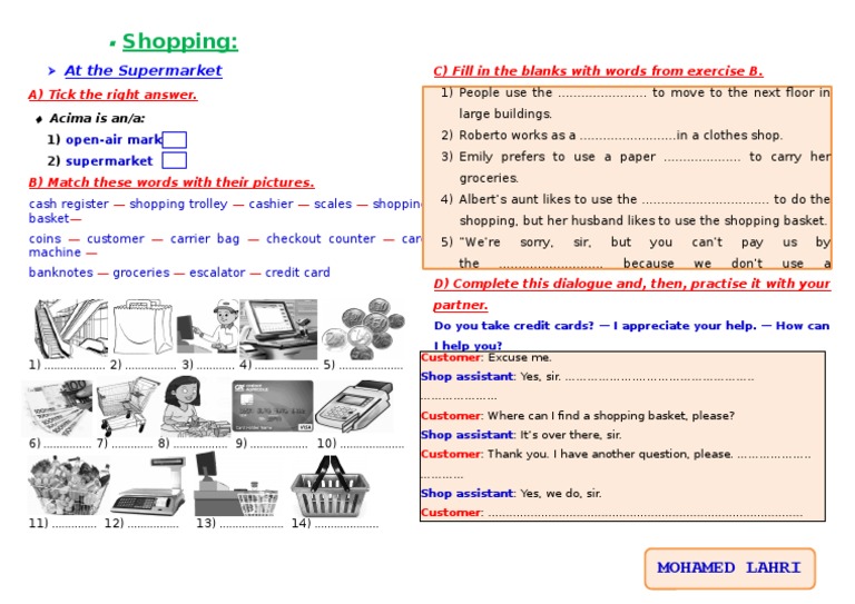 At the Supermarket C) Fill in the blanks with words from exercise B.