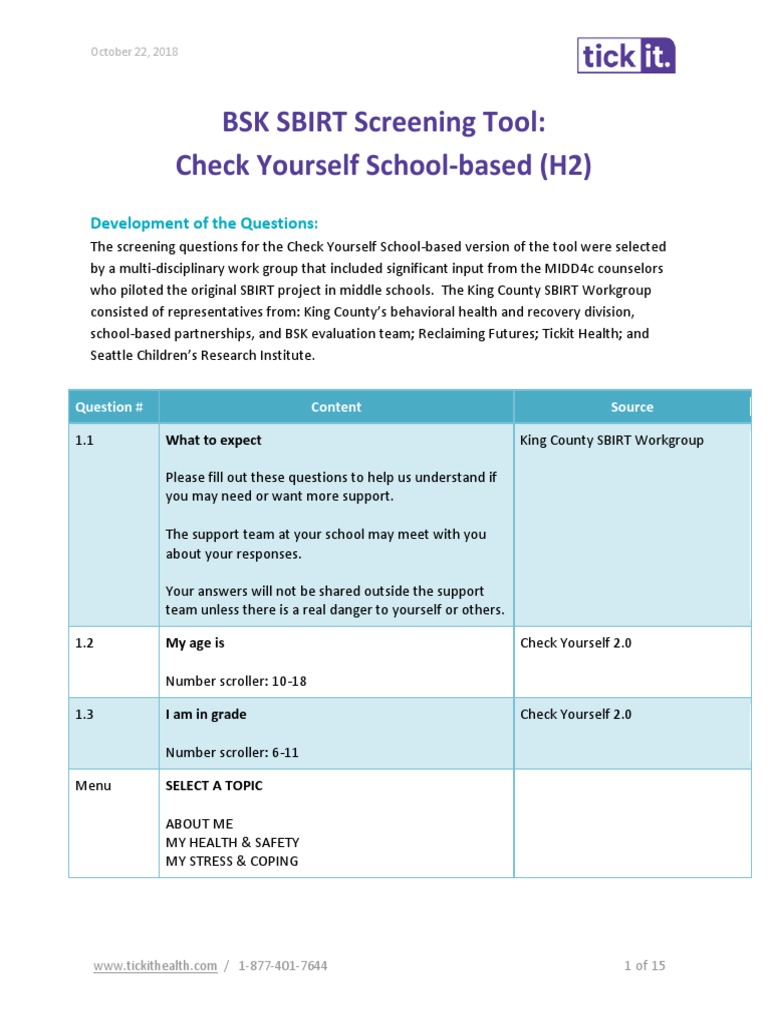 7.5 Someone from your school’s support team may check King County SBIRT Workgroup