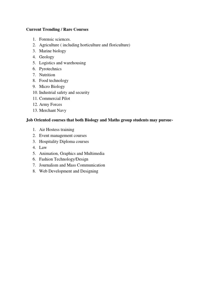 Job Oriented courses that both Biology and Maths group students may pursue-