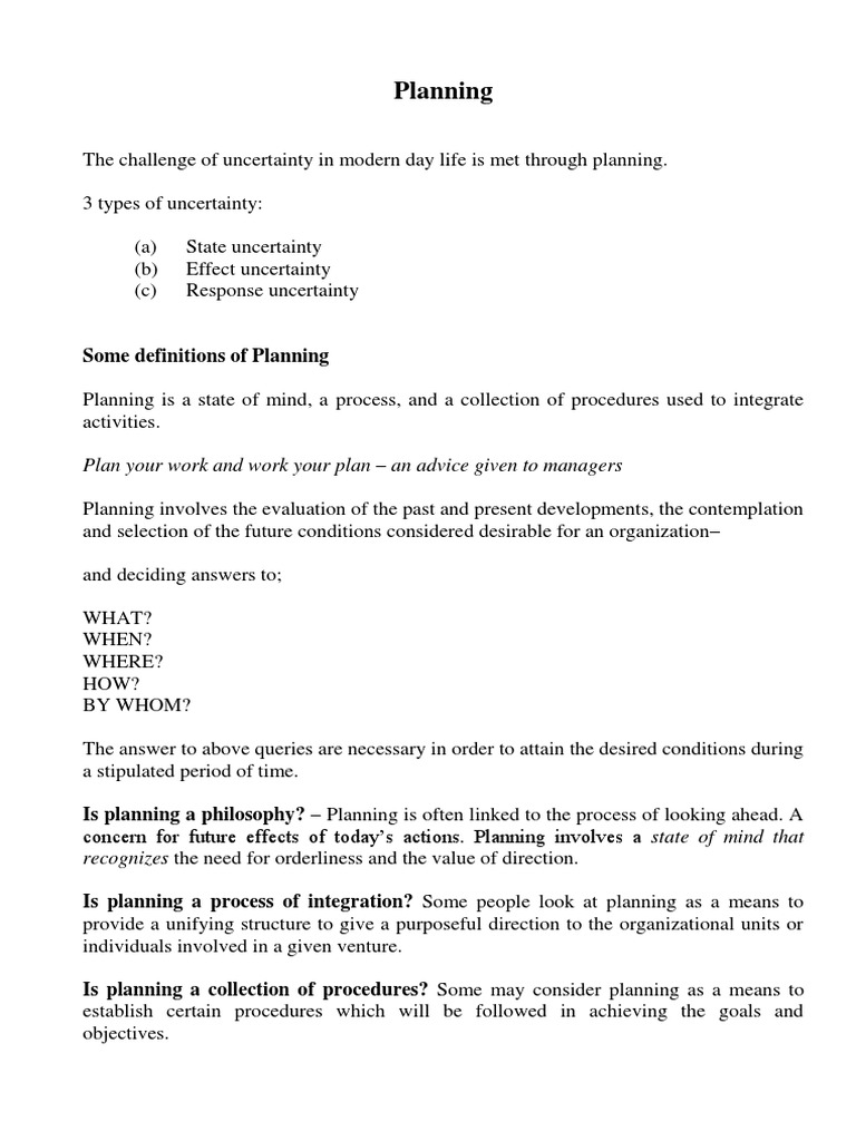 Planning is setting goals. It also involves choosing and thinking, and deciding what to