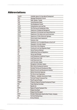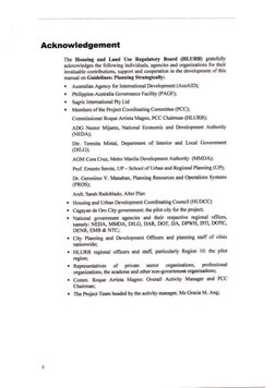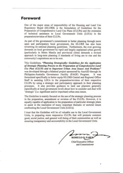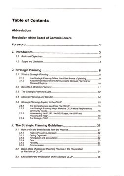 Guidelines for the Application of the Strategic Planning Process in the Preparation of The Comprehensive Land Use Plan (CLUP) and to Important Urban Area Issues and Problems - 2001 Table of contents.