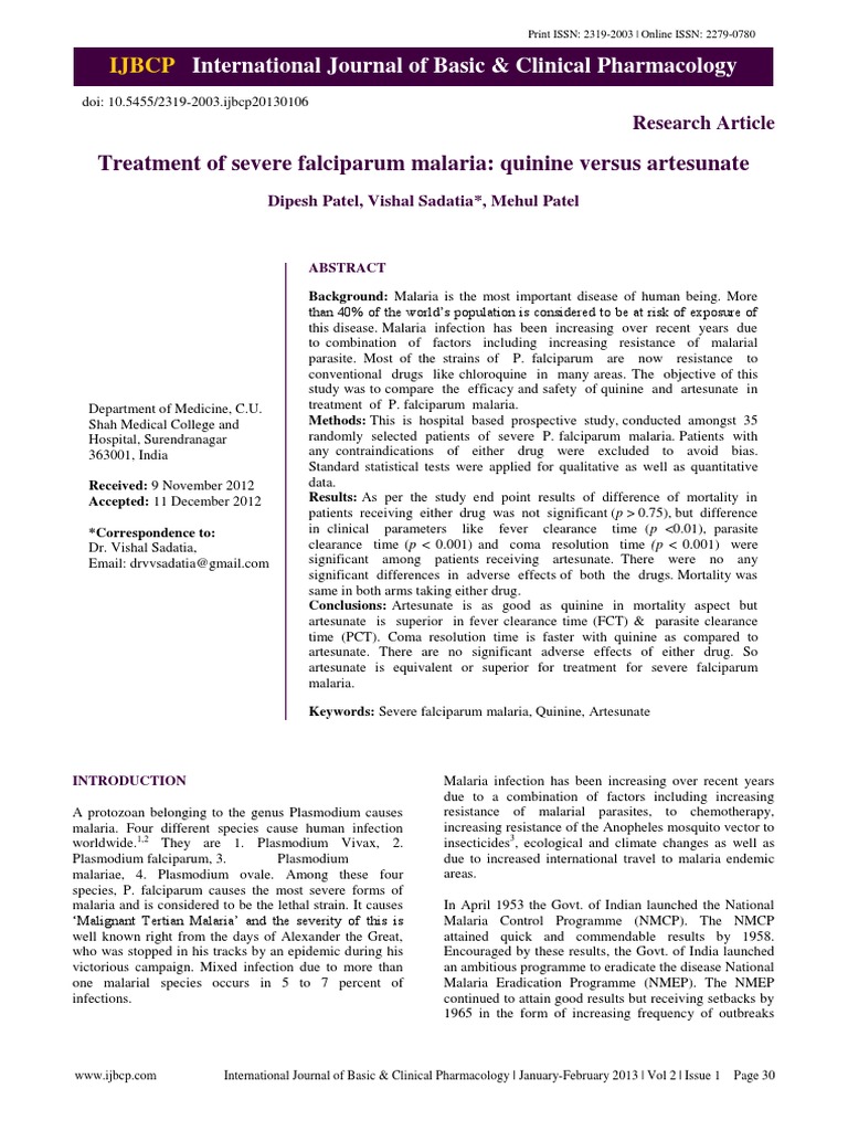 versus artesunate. Int J Basic Clin Pharmacol