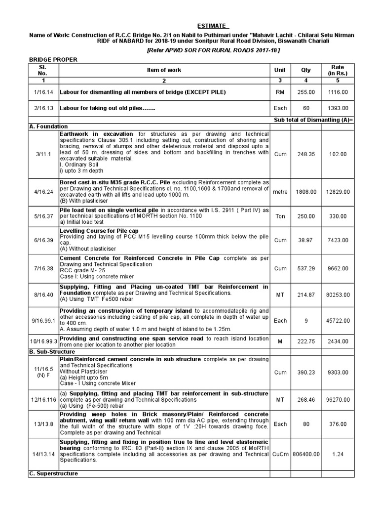 Bridge Construction Estimate