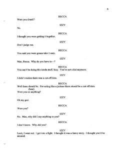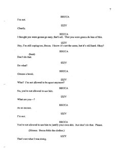 dining room table. Her sistet Izzy, early thirties, is in the middle of