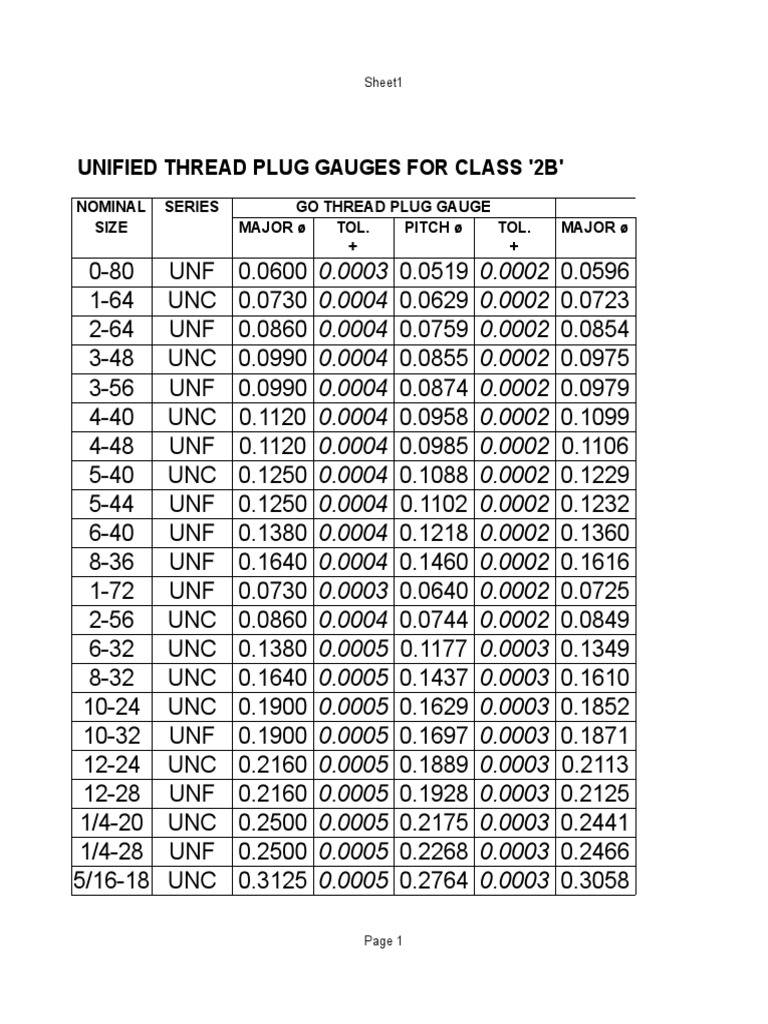 UNIFIED THREAD PLUG GAUGES FOR CLASS '2B'