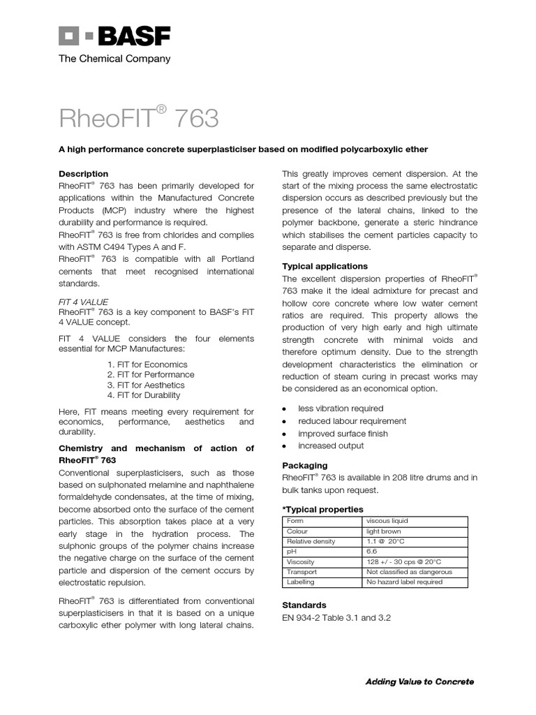 RheoFIT® 763 is a ready to use admixture that is facility are manufactured under a management