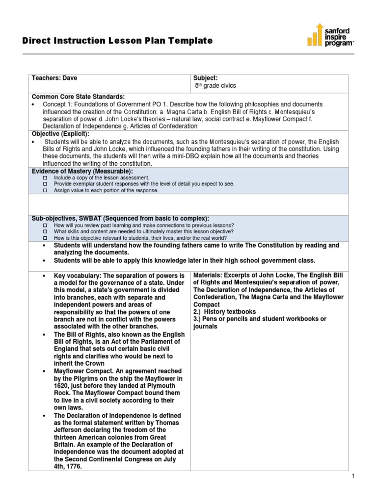 Direct Instruction Lesson Plan Template