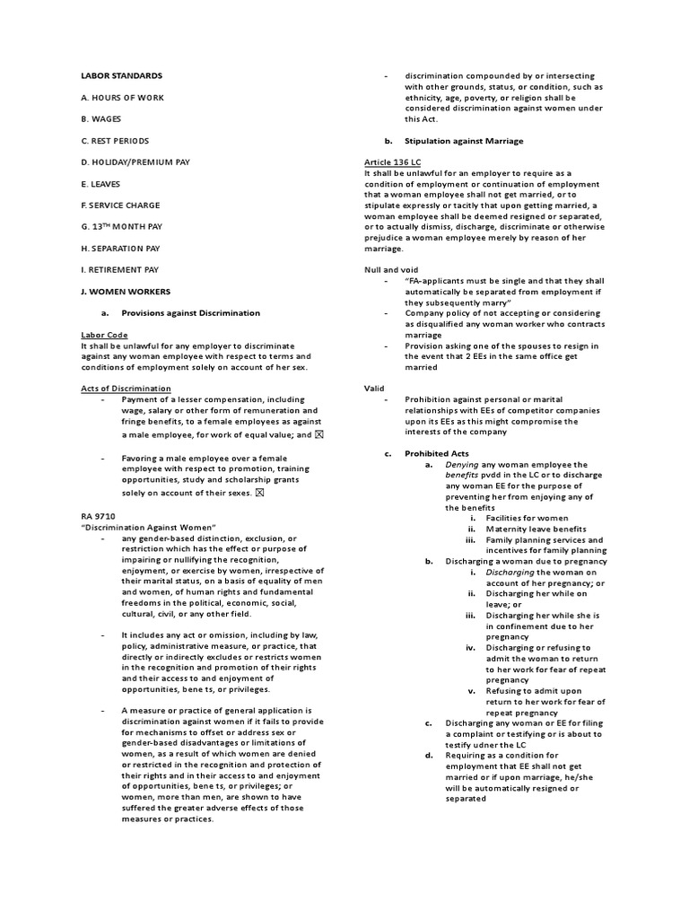 C. REST PERIODS b. Stipulation against Marriage