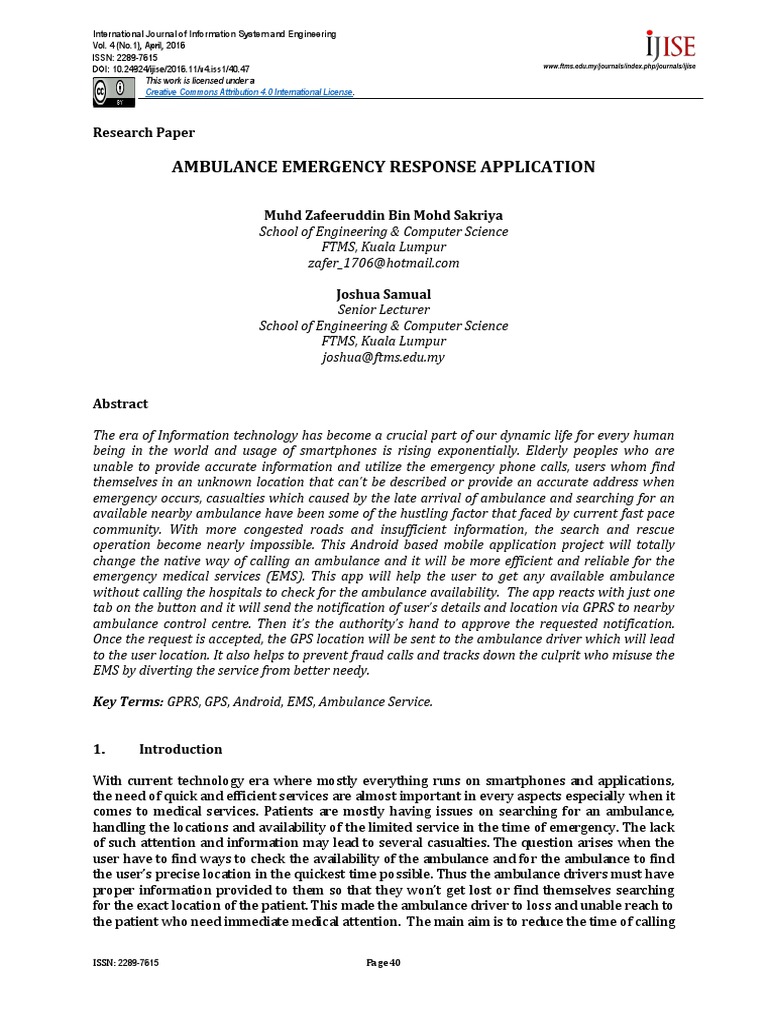 Key Terms: GPRS, GPS, Android, EMS, Ambulance Service.