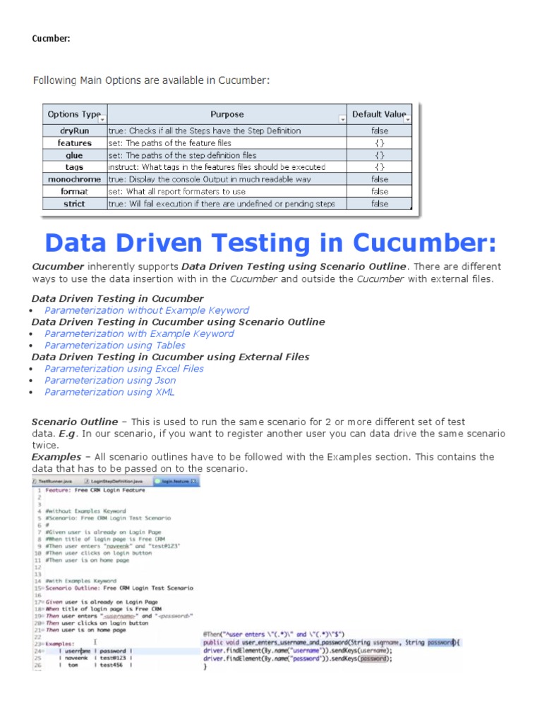 ways to use the data insertion with in the Cucumber and outside the Cucumber with external files.