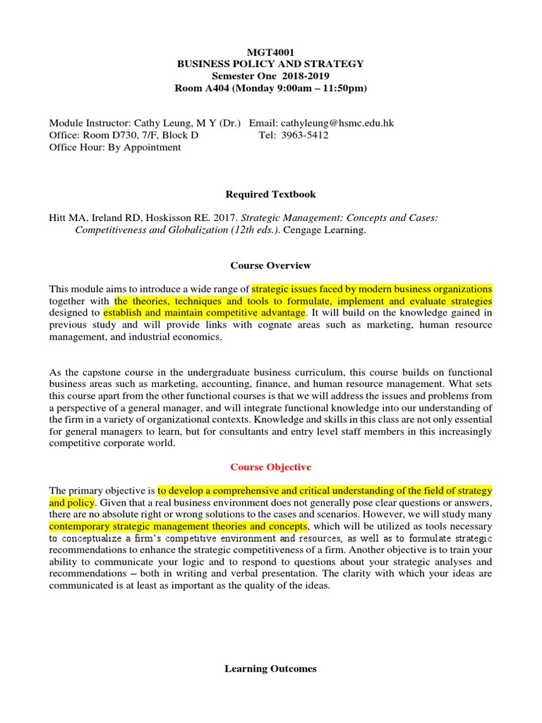 This module aims to introduce a wide range of strategic issues faced by modern business organizations