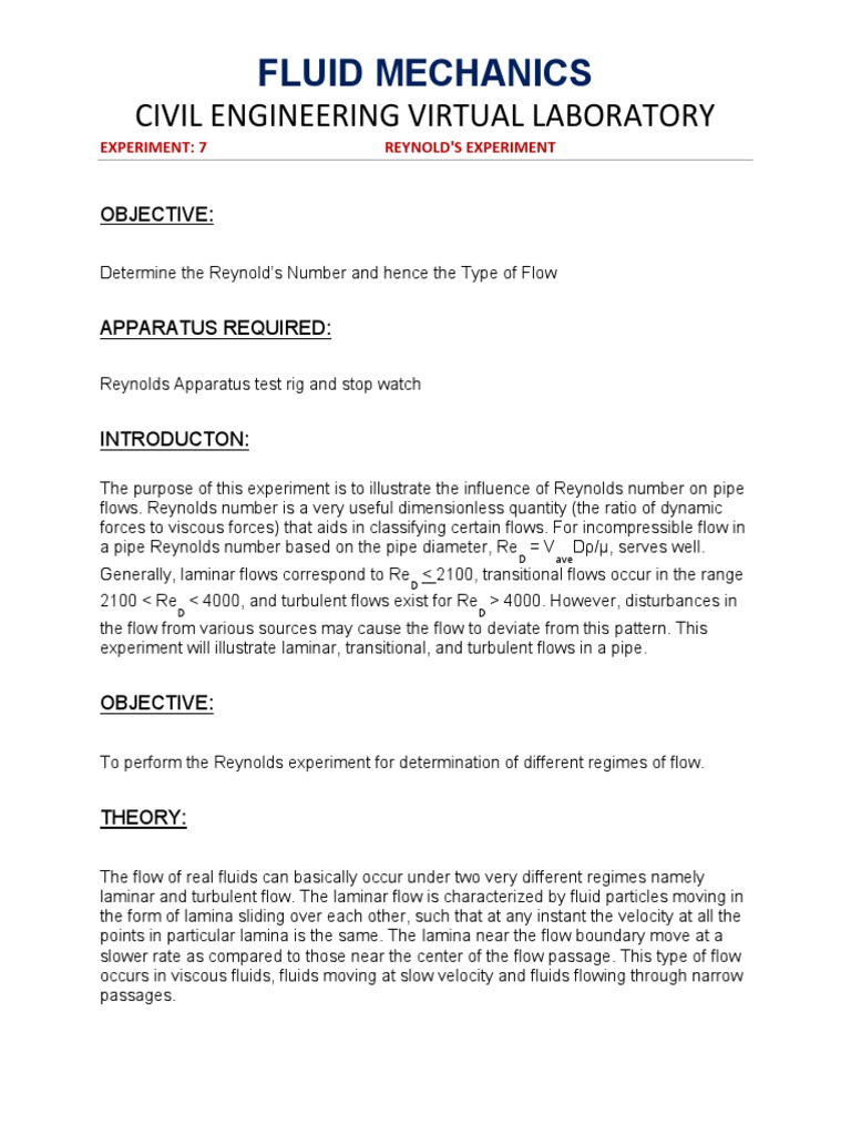 EXPERIMENT: 7 REYNOLD'S EXPERIMENT BSA-CEVL