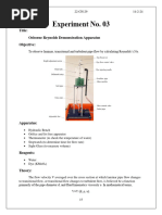 EXPERIMENT: 7 REYNOLD'S EXPERIMENT