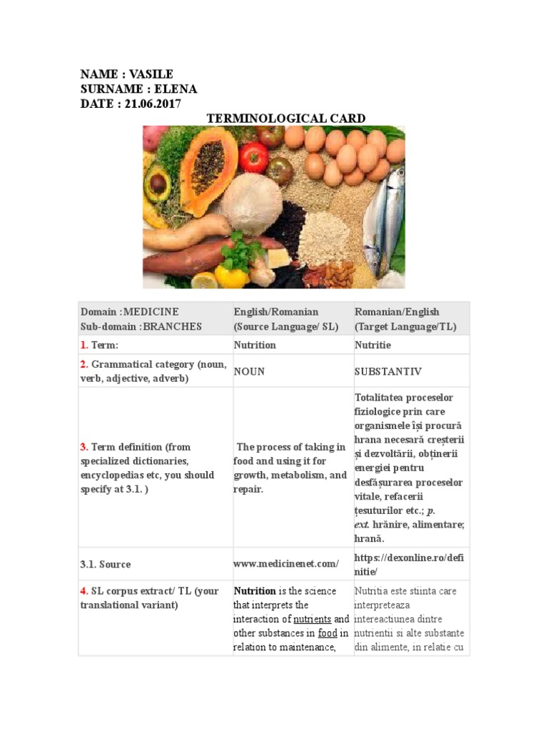 5. Terminological unit typology Nutritional