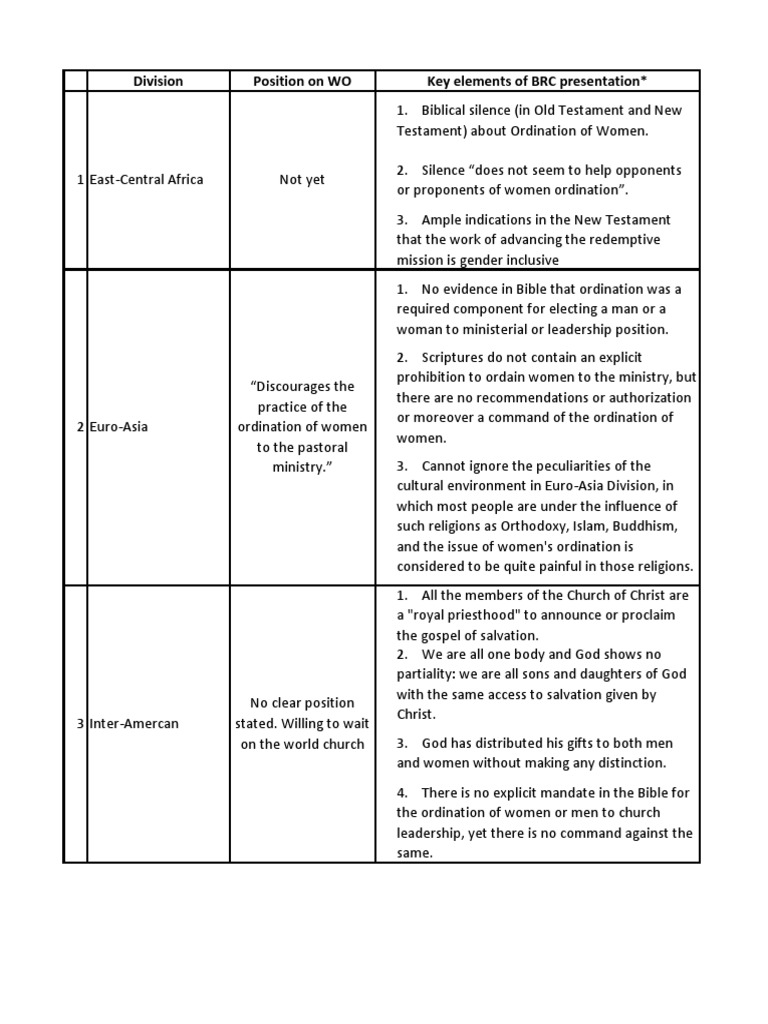 issues of Women’s Ordination to the division’s