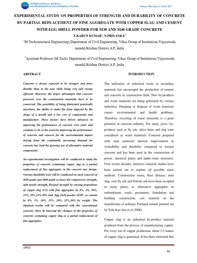 use of copper slag in the concrete industry as a concludes that the increase in the eggshell ash