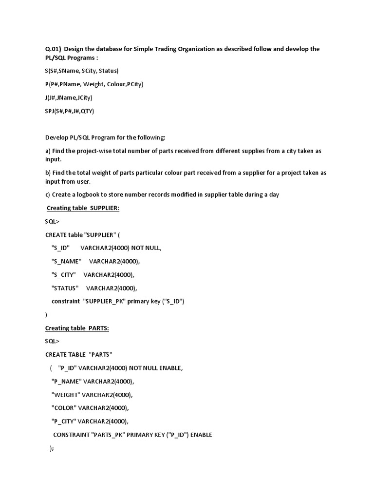01) Design the database for Simple Trading Organization as described follow and develop the