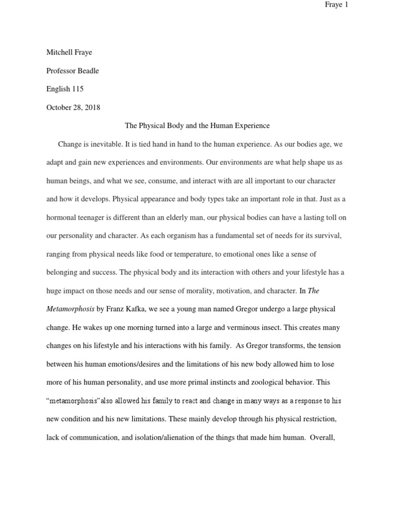 character is very trivial and important. As we can see within The Metamorphosis, changes to