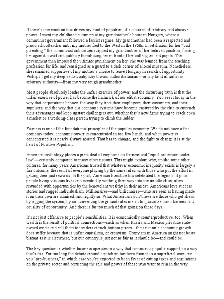 Fairness is one of the foundational principles of the populist economy. We do not have a fair