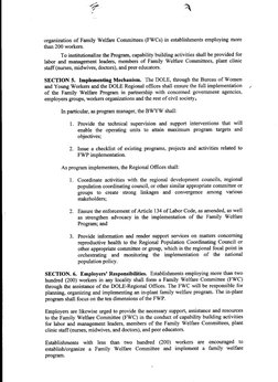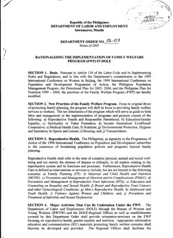 Basis: Explains the legal and policy basis for the Family Welfare Program implementation within DOLE.