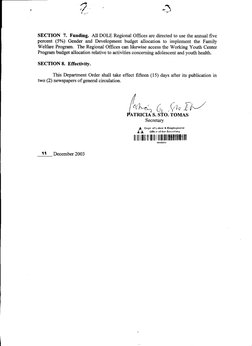 program.SECTION 7. Funding. All DOLE Regional Offices are directed to use the annual five