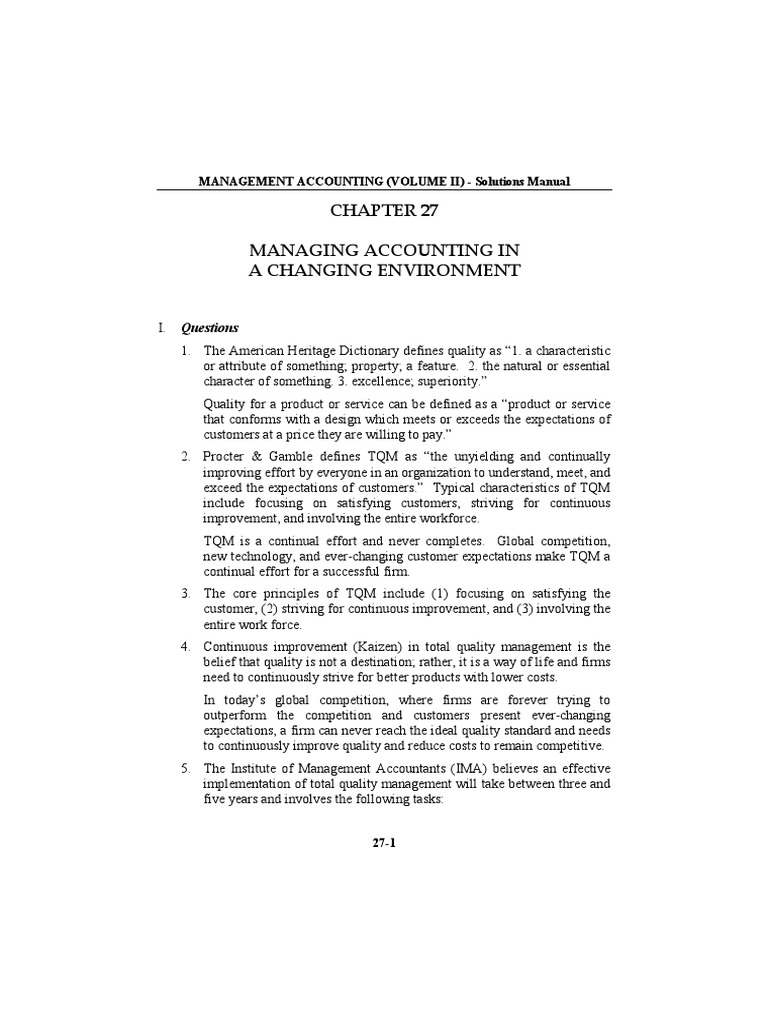 Managing Accounting in a Changing Environment Chapter 27