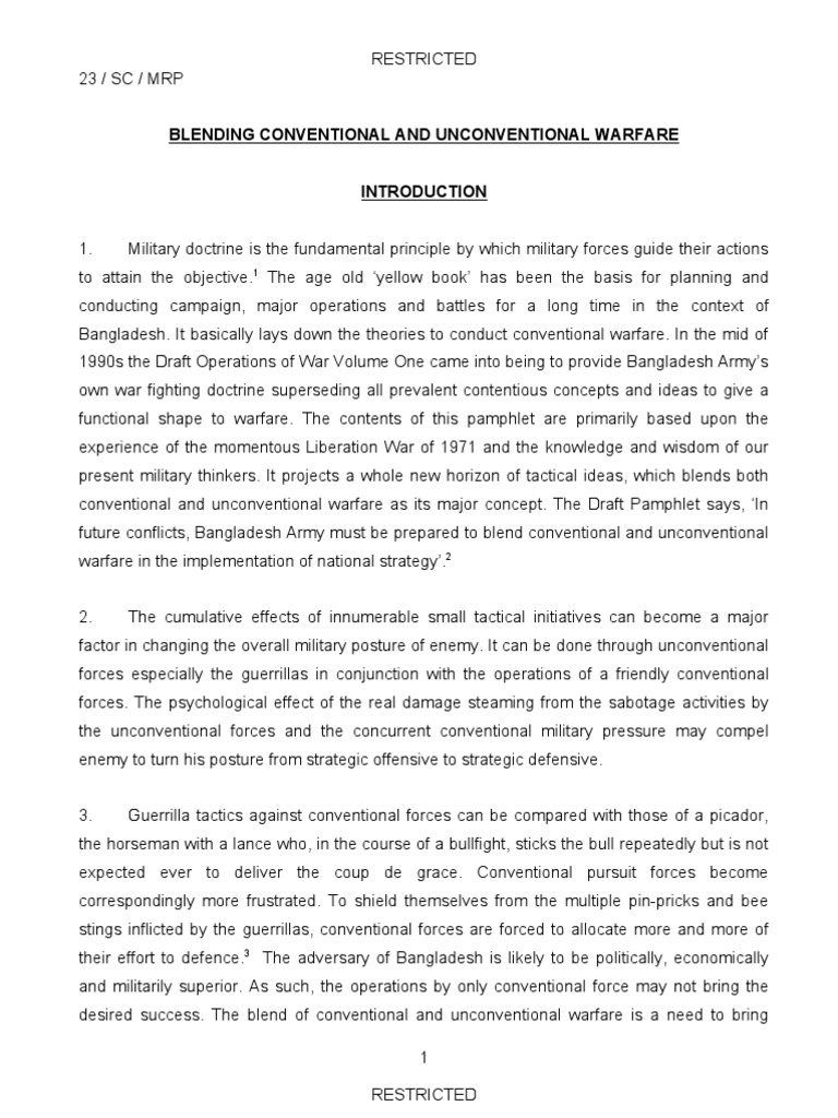 Bangladesh. It basically lays down the theories to conduct conventional warfare. In the mid of