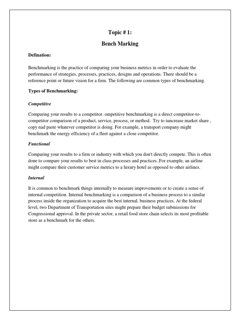 reference point or future vision for a firm. The following are common types of benchmarking.