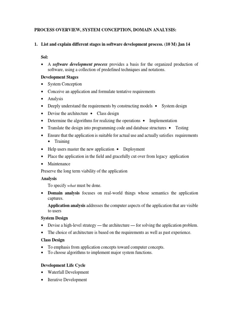 1. List and explain different stages in software development process. (10 M) Jan 14