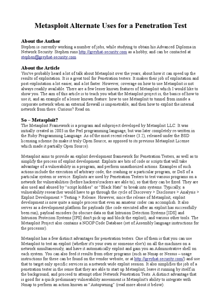 Metasploit Alternate Uses for a Penetration Test